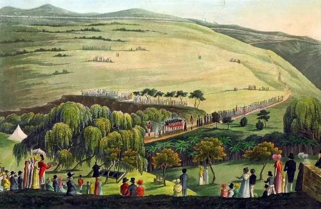 Returning home at the conclusion of the Peninsular War, in 1819 the regiment had the unusual distinction of being sent on garrison duty to the island of St. Helena, where they were to guard arguably the world's most famous prisoner at that time - Napoleon Bonaparte. Stanley, still as a Lieutenant, is noted as being present on St. Helena from March 1820 (A St. Helena Who's Who, Arnold Chaplin, p.31, refers) and the 20th played a significant part in the last days of the former Emperor - the Regimental Surgeon, Archibald Arnott, paid him many professional visits during his final illness and two of Stanley's brother officers (Captains Lutyens and Crokat) successively acted as Orderly Officer at Longwood House. Undoubtedly Napoleon's situation and character must have been a great topic of conversation in the Officers Mess of the 20th, with Stanley having his fair share of the discussion and, upon the former Emperor's death, his coffin was borne by 12 men of the Grenadier Company of the regiment.