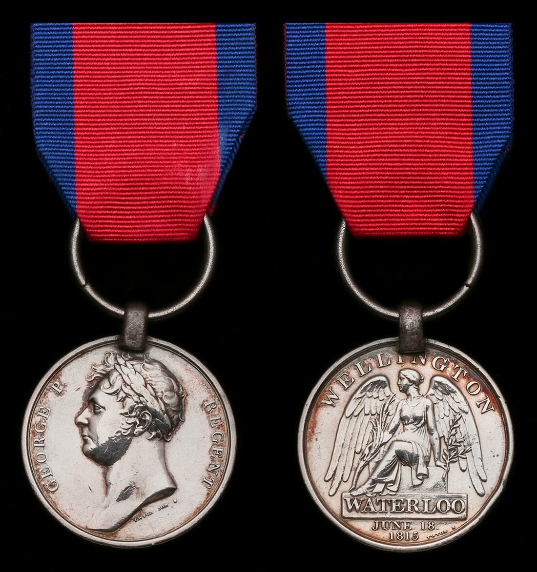 The Waterloo Medal awarded to Private D. Higgs, 28th Regiment of Foot, who was wounded in action at Bayonne in 1813, later seeing action at Waterloo where the Battalion distinguished themselves by being the only unit mentioned by name in Wellington's dispatch