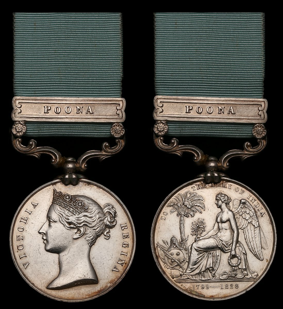 Army of India 1799-1826, long-hyphen reverse, 1 clasp, Poona (Private Essnac Balnac. 2nd. Bn. 9th. Rt. N.I.), impressed in upright capitals, light contact marks otherwise very fine