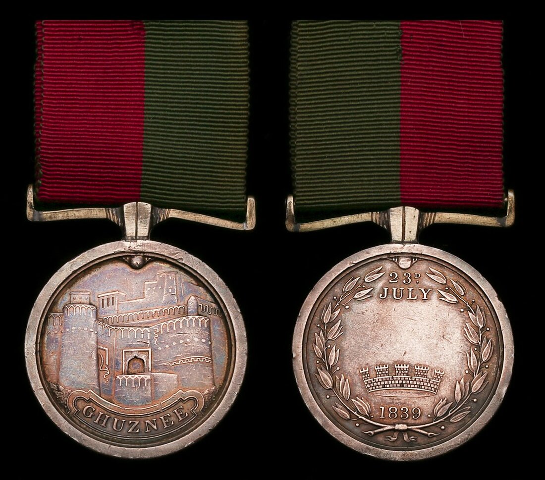 (x) Ghuznee 1839 (Jas Foley, 13th Regt.) naming engraved in fine running script around the edge, fitted with original suspension, contact wear overall, nearly very fine