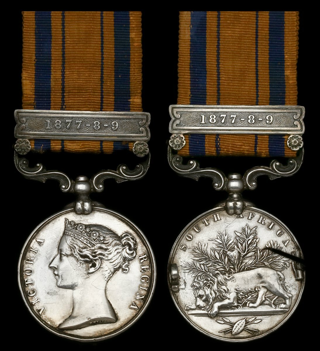 The published Medal Roll notes entitlement to the clasp '1879' only, though the medal here appears exactly as issued and upon an original length of silk riband.
