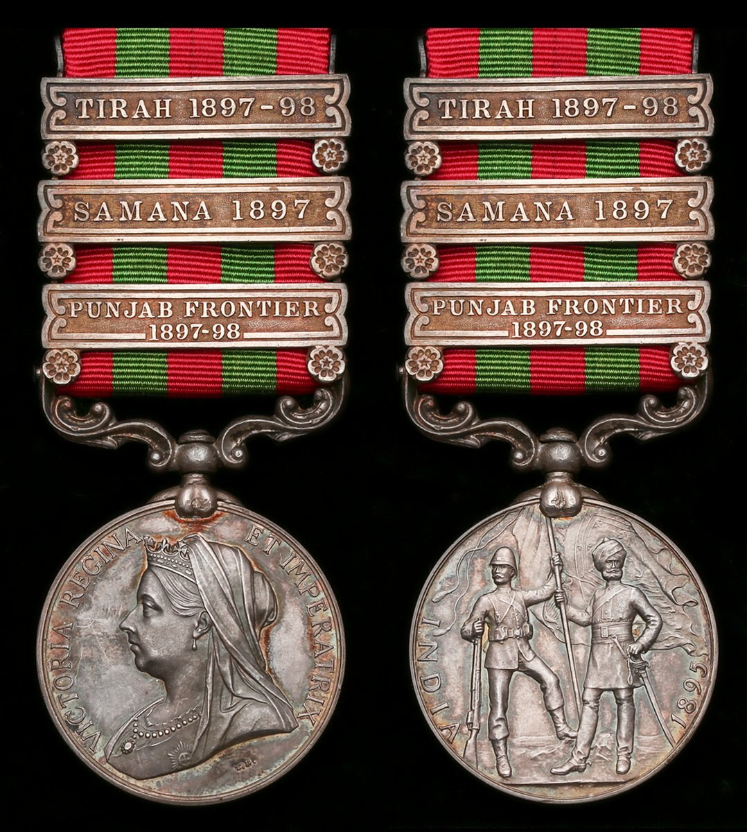 The tragic India General Service Medal awarded to Drummer H. Little, Northamptonshire Regiment, killed in action during his regiment's Last Stand at Saran Sar in November 1897 which saw Second Lieutenant MacIntire and a dozen men of the Northamptons hold their ground against overwhelming odds, in a heroic yet doomed attempt to save wounded comrades
