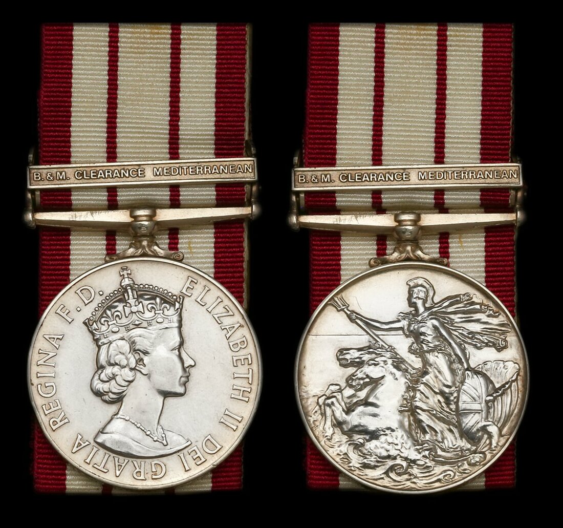 Only 60 clasps were issued to members of the Royal Navy, with qualifying service being a minimum of six months' active involvement in bomb and mine clearance. The majority of this work centred around Malta and, in particular, the main harbour of Valetta, where large quantities of bombs were recovered from a number of merchant vessels that had been sunk by air attack during the Second World War.