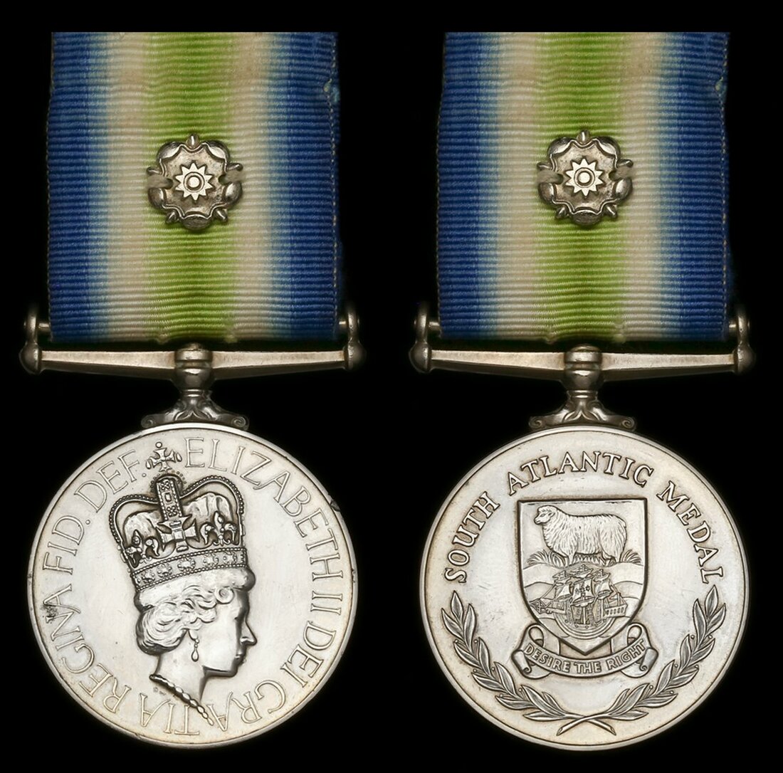 The South Atlantic Medal awarded to Airtrooper M. J. Price, Army Air Corps, a member of No. 656 Squadron who was wounded by enemy shrapnel during the attack on Sir Galahad and Sir Tristram on 6 June 1982