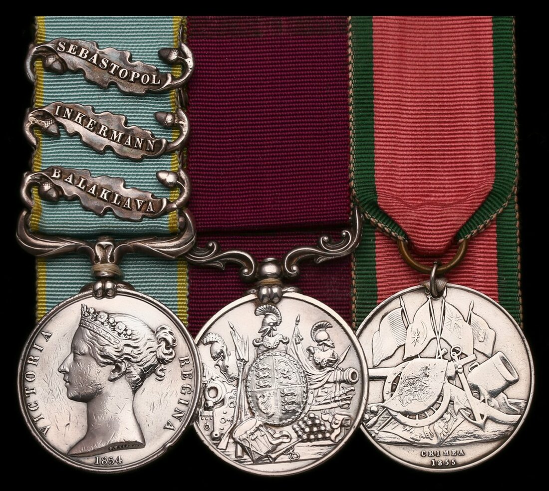 Crimea 1854-56, 3 clasps, Balaklava, Inkermann, Sebastopol (Pte J. Lahey. 6th Dr Gs.), engraved naming; Army L.S. & G.C., V.R. (1256 Jas Lahey 6th Dragoons); Turkish Crimea 1855, British issue, fitted with replacement ring suspension, very fine (3)