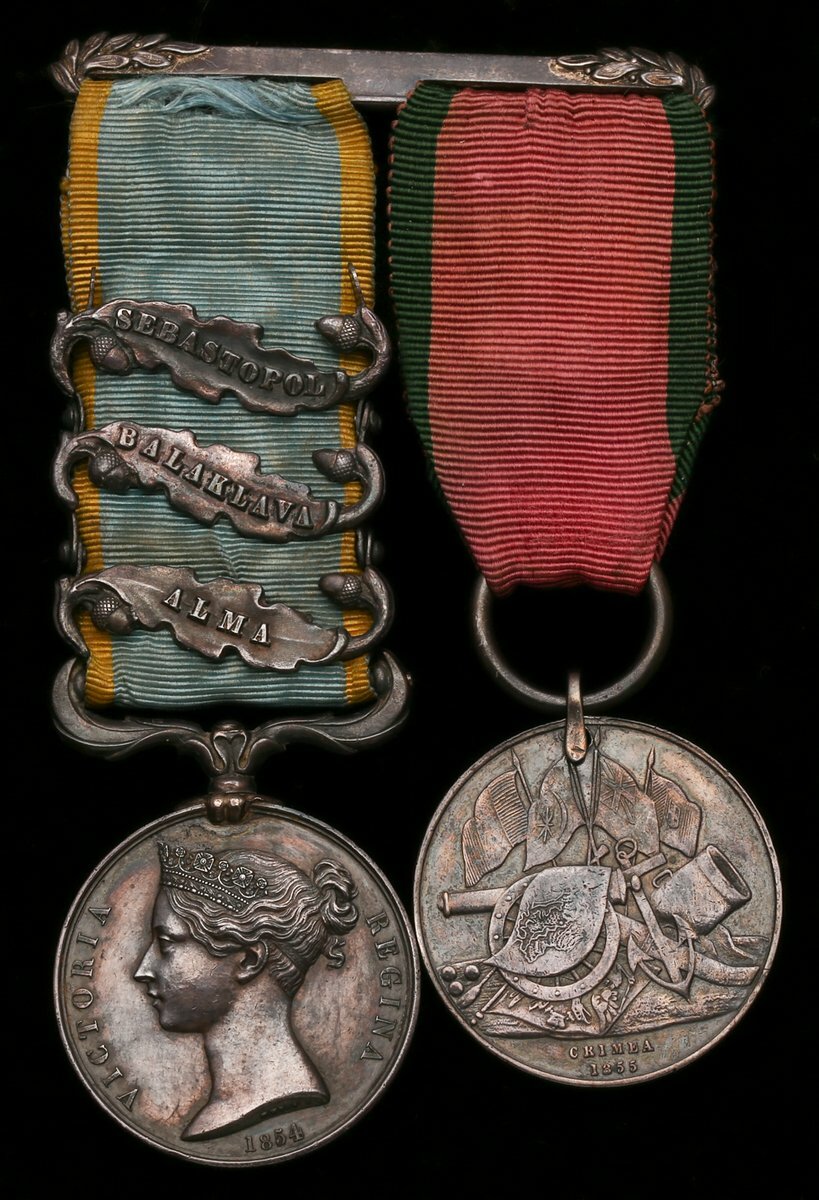 The notable Crimean War pair awarded to Colonel W. B. Ainslie, C.B., 93rd (Sutherland Highlanders) Regiment of Foot, who led the main body of the famed 'Thin Red Line'