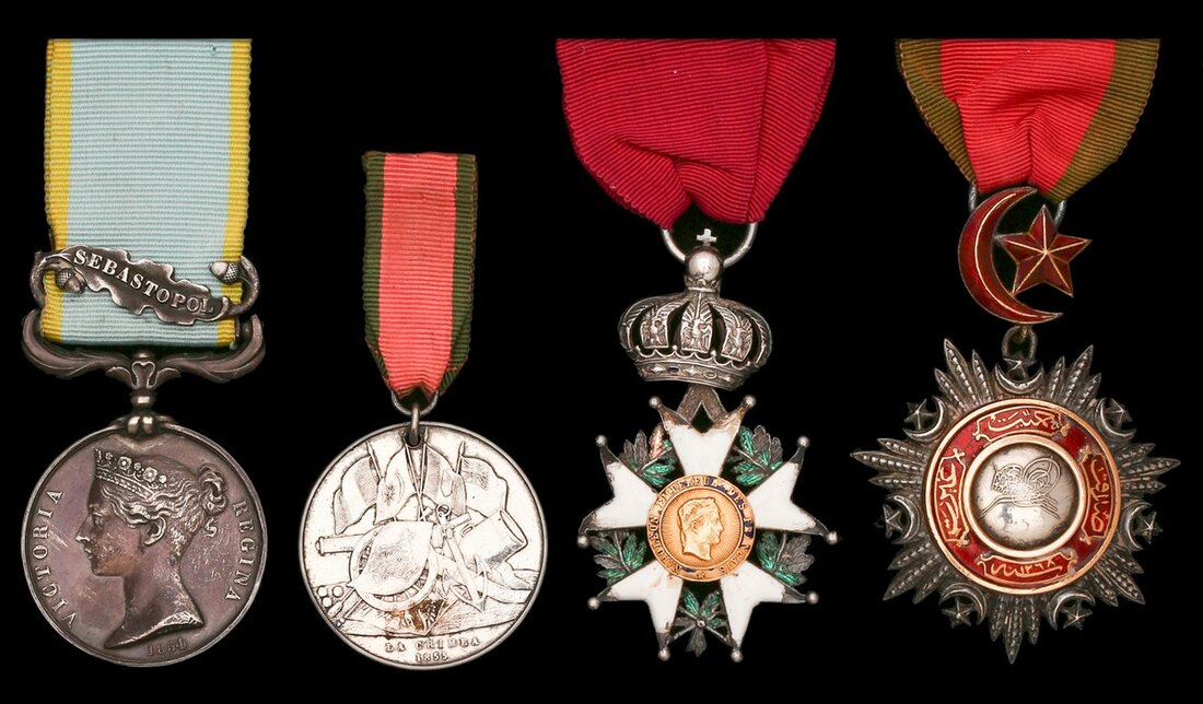 The campaign group of five awarded to Lieutenant-General G. T. Field, Royal Artillery who was 'mentioned' and additionally honoured by both the French and Turkish for the Crimean War