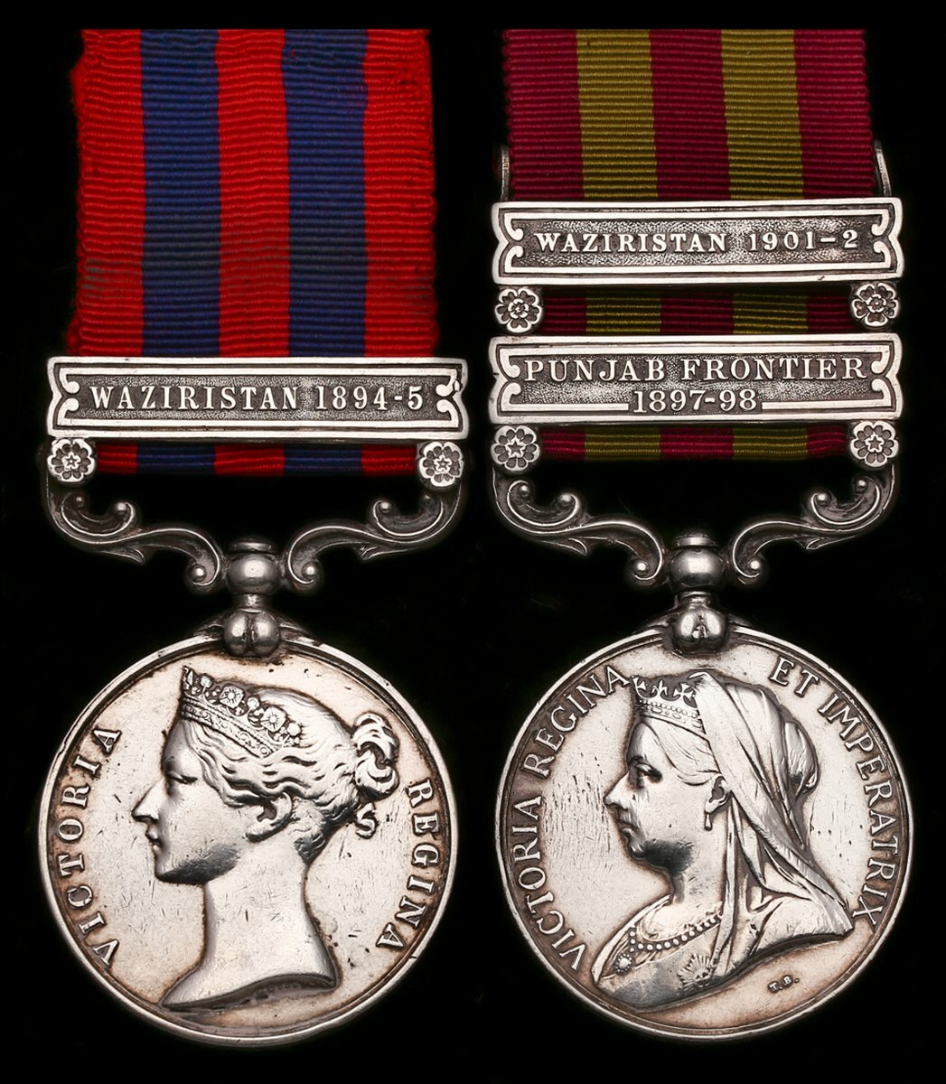 A good North West Frontier campaign pair awarded to Lieutenant-Colonel A. W. Chaldecott, 21st Cavalry (Frontier Force) (Daly’s Horse), late 1st Punjab Cavalry, who won 'mentions' in the Waziristan operations of 1894-95 and 1901-02, the former for ‘his coolness and personal bravery’ in action
