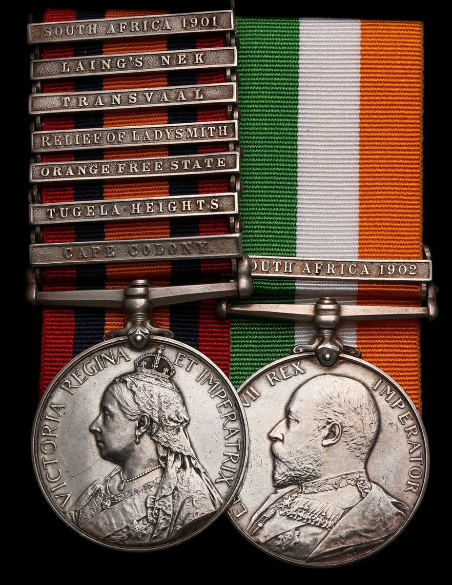 It would appear that his South Africa 1901 clasp was issued with his Queen's South Africa Medal and was not re-issued when his King's South Africa Medal was issued in November 1904.
