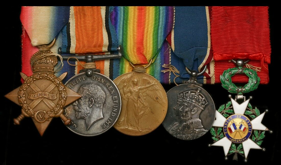 1914-15 Star (Capt. C. C. Craig. R. Ir: Rif:); British War and Victory Medals (Capt. C. C. Craig.); Coronation 1937; France, Legion of Honour, Knight's breast Badge, silver-gilt, silver and enamel, court mounted as worn, the last two loose, tiny enamel damage to the last, otherwise good very fine (5)