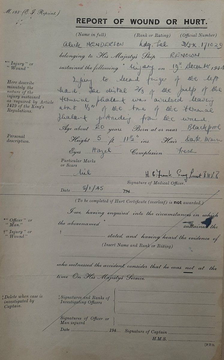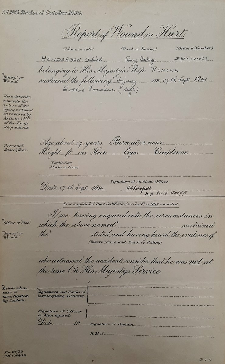 Two original Report of Wounds or Hurt certificates, both for service with Renown in 1941 and 1944.