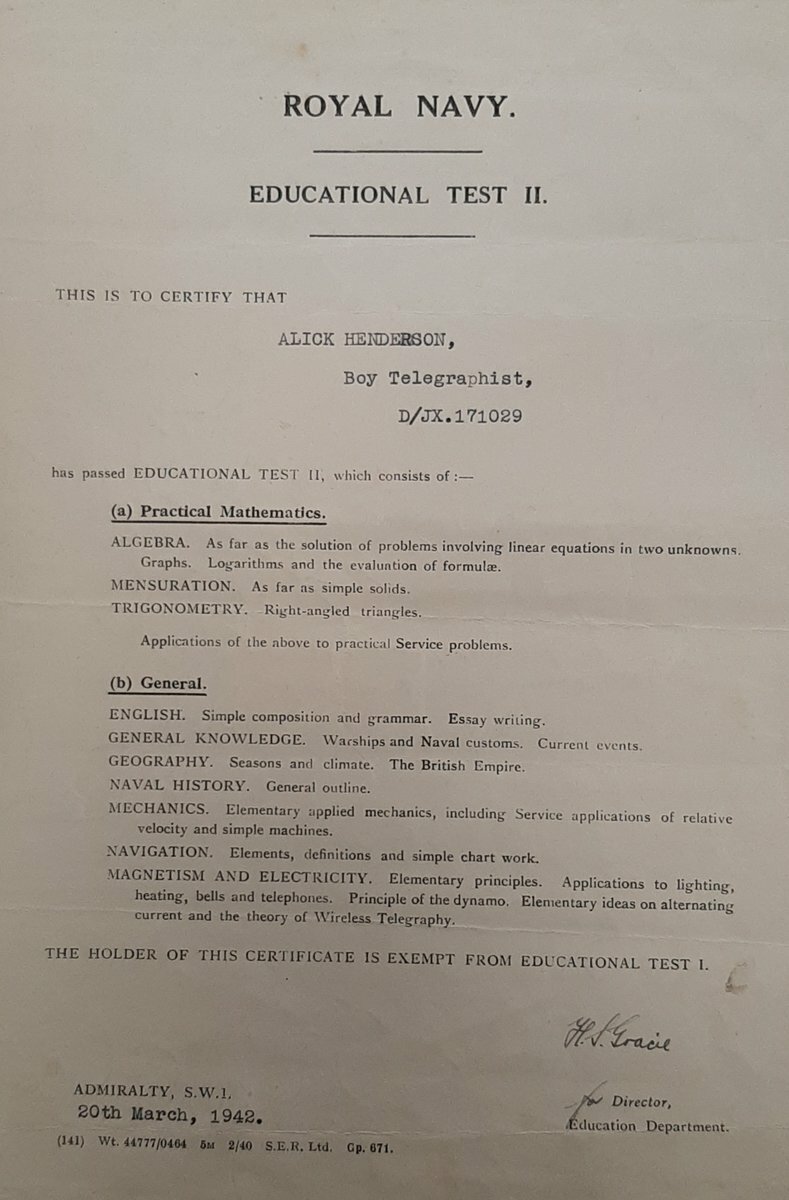 Original Royal Navy Educational Test dated March 1942.