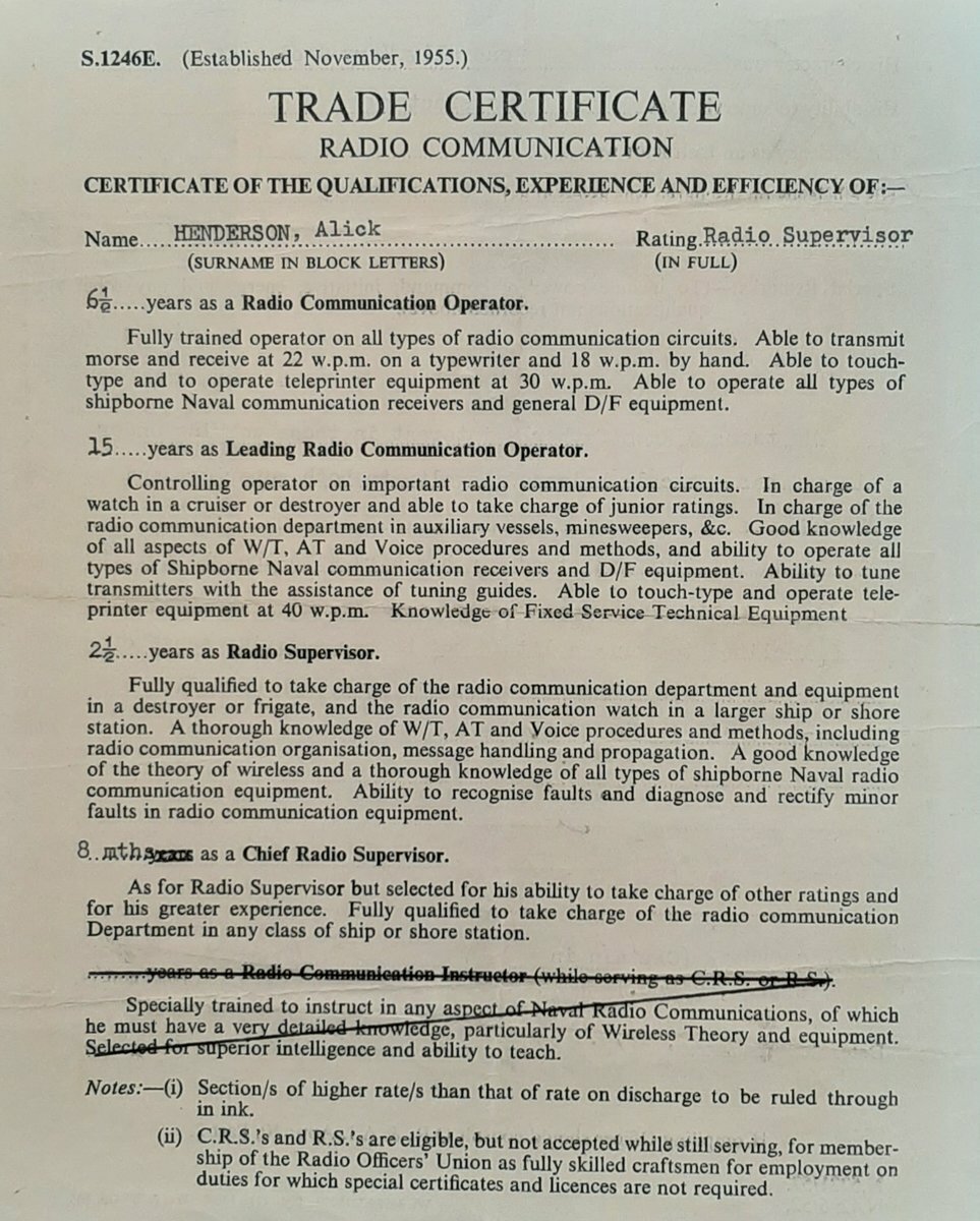 Trade Certificate for Radion Communication dated 16 April 1954 at H.M.S. Cochrane signed by OiC, H.M.S. Clyde.