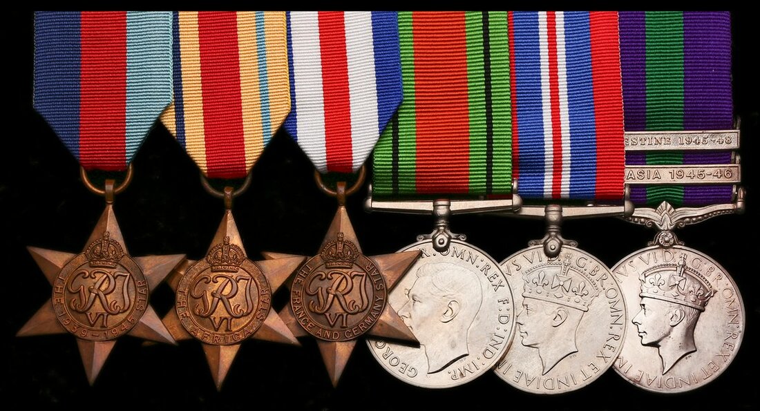 A. C. Wallace was a native of Paisley, Renfrewshire, Scotland. Two men named 'A. Wallace' appear upon the roll for the Palestine medal, one as a Craftsman attached to the Army Air Corps and the other a private with 5th Battalion, Army Air Corps. Both men have different service numbers and it is unclear which the group might relate to; sold together with a copied medal roll.