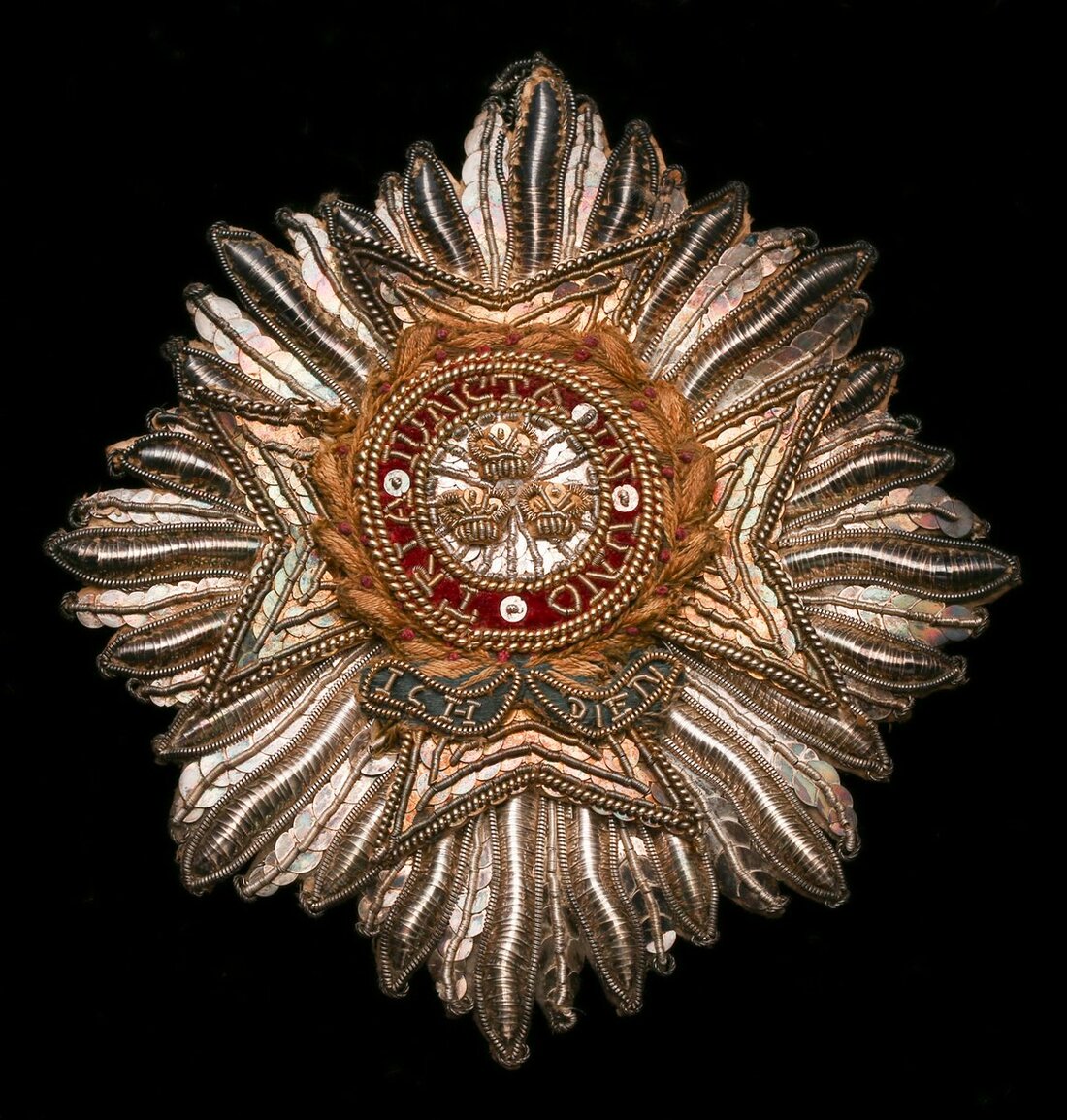 (x) The Most Honourable Order of the Bath, Military Division, G.C.B., Knight Grand Cross (G.C.B.) embroidered breast Star, circa 1820-30, 104mm, cloth, bullion, silver and gilt wire and sequins with red velvet motto and green thread wreath, original backing paper present with evidence of adhesive attachment to cloth, generally good very fine