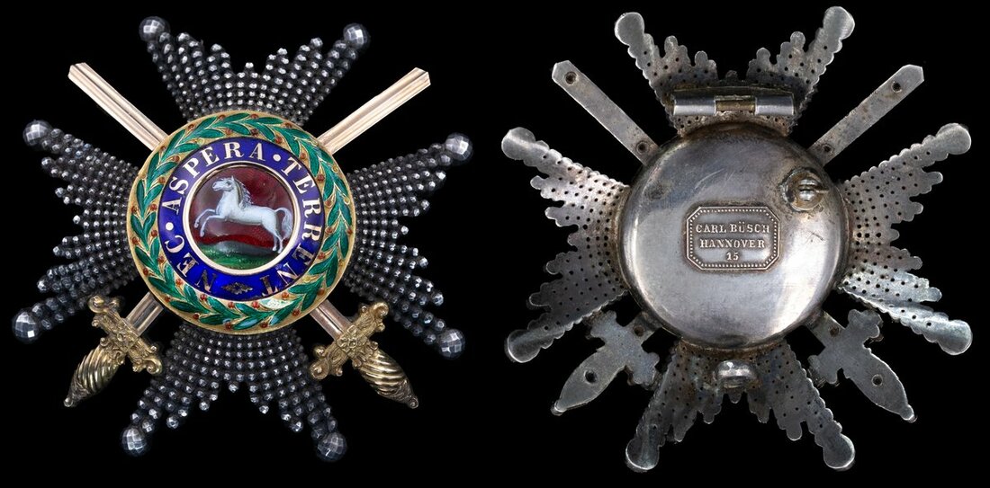 (x) The Royal Guelphic Order, K.C.H. (Military) Knight Commander's (K.C.H.) breast Star by Carl Busch, Hannover, 71mm, silver, silver-gilt and enamel, lacking retaining pin, some minor chips to wreath but otherwise very fine