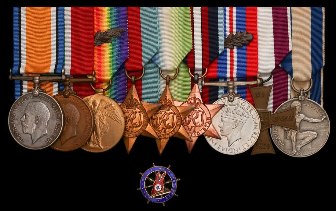 British War Medal 1914-20 (Lieut. E. W. Moulton, R.I.M.); Mercantile Marine War Medal 1914-18 (Edgar W. Moulton); Victory Medal 1914-19, with M.I.D. oak leaves (Lieut. E. W. Moulton, R.I.M.); 1939-1945 Star; Atlantic Star; Arctic Star; War Medal 1939-45, with oak leaf for King's Commendation; Poland, Republic, Cross of Valour; Lloyd's War Medal for Bravery at Sea (Captain E. W. Moulton, S.S. "Arandora Star" 2nd July 1940.), together with an enamelled S.S. Arandora Star lapel badge, one or two minor edge bruises, good very fine (10)