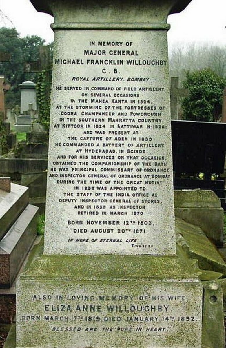 This marked the last of his active service in India as Willoughby was appointed Agent for Gunpowder with the Bombay Ordnance Board. Later appointed Principal Commissary of Ordnance and Inspector-General of Ordnance and Magazines he was confirmed in the rank of Major on 4 February 1950. Further advanced Lieutenant-Colonel just three years later on 20 January 1853 he had by this time become a widower and married his second wife married at Bombay on 20 June 1854.