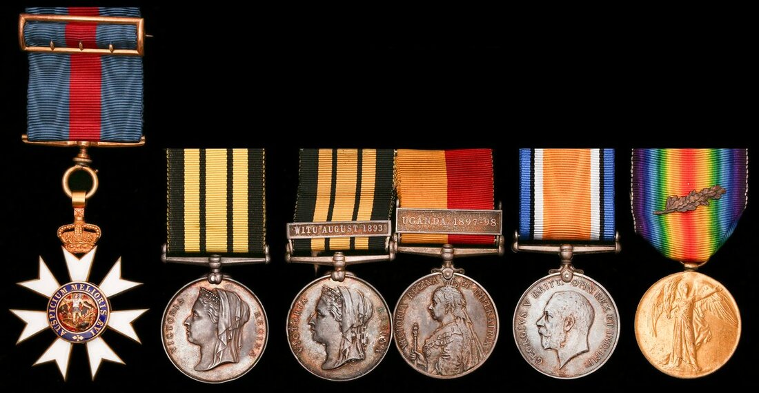 The Most Distinguished Order of St. Michael and St. George, (C.M.G.), Companion's breast Badge, gold and enamel, with riband buckle; East and West Africa 1887-1900, for Mwele 1895-6, 1 clasp, Witu August 1893 (Lieut. C. St. A. Wake Mwele 1895-6), the rank privately impressed; East and West Africa 1887-1900, for Mwele 1895-6 (Chas. Wake. Vice Consul. Mwele 1895-6); East and Central Africa 1897-99, 1 clasp, Uganda 1897-98 (Capt. C. St. Aubyn. Wake. E. African Rifles.); British War and Victory Medals, with M.I.D. oak leaves (Major C. St. A. Wake.), good very fine (6)