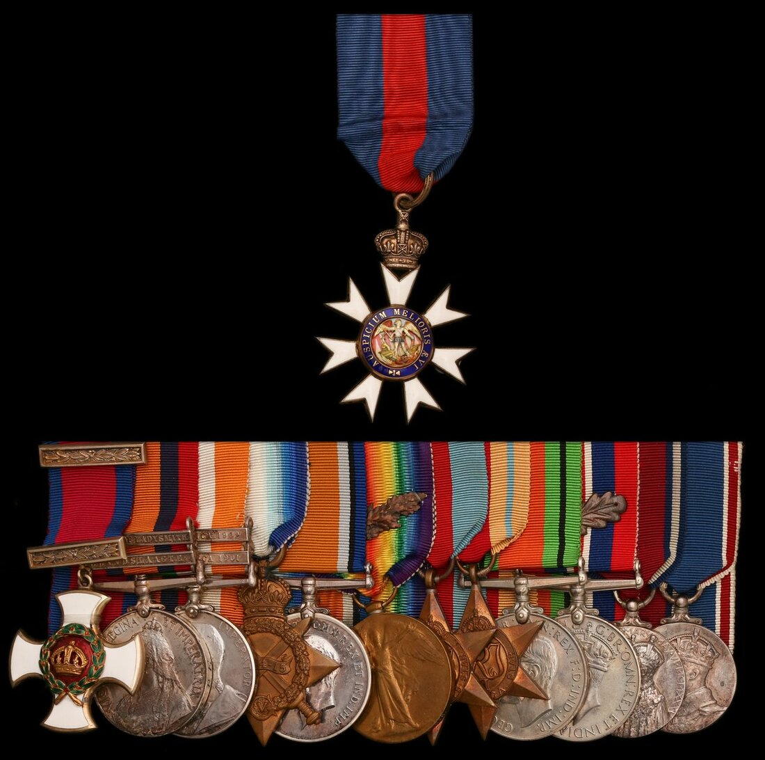 The Most Distinguished Order of St. Michael and St. George, Companions (C.M.G.) neck Badge, silver-gilt and enamel; Distinguished Service Order, G.V.R., silver-gilt and enamel; Queen's South Africa 1899-1902, 2 clasps, Elandslaagte, Defence of Ladysmith (Lieut,, R. B. Turner R.E.), officially re-engraved naming; King's South Africa 1901-02, 2 clasps, South Africa 1901, South Africa 1902 (Lt. R. B. Turner. R.E.); 1914-15 Star (Capt. R. B. Turner S. A. Admin Serv.), stipple engraved naming, as seen in some late South African Authority issued medals; British War and Victory Medals (Lt. Col. R. B. Turner.), the rank to the BWM officially corrected, with M.I.D. oak leaves; 1939-1945 Star; Africa Star; Defence and War Medals 1939-45, with M.I.D. oak leaf; Jubilee 1935; Coronation 1937, mounted for wear where applicable, overall good very fine (13)