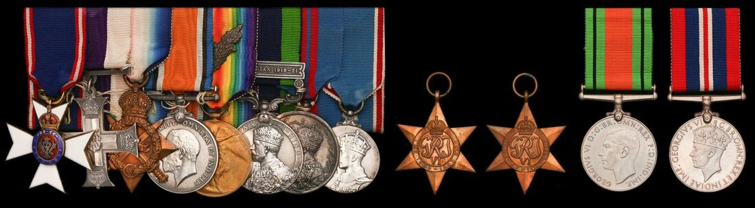 The Royal Victorian Order, M.V.O., Fourth Class breast badge, silver-gilt and enamel, the reverse officially numbered '1143'; Military Cross, G.V.R., the reverse engraved, 'Captain E. D. Metcalfe 3rd Skinners Horse 25th Aug. 1917'; 1914-15 Star (Lt. E. D. Metcalfe, 3/Horse); British War and Victory Medals, with M.I.D. oak leaves (Capt. E. D. Metcalfe), the V.M. with officially re-impressed naming as common to the Indian Army; India General Service 1908-35, 1 clasp, Waziristan 1919-21 (Capt. E. D. Metcalfe, 1 Lcrs.); Delhi Durbar 1911; Coronation 1937; 1939-45 Star; Africa Star; Defence and War Medals 1939-45, very fine, the earlier awards mounted court-style as worn and the Second World War medals in their O.H.M.S. card forwarding box addressed to 'F./O. E. D. Metcalfe, M.V.O. M.C., Little Compton Manor, Moreton-in-Marsh, Glos.' (12)