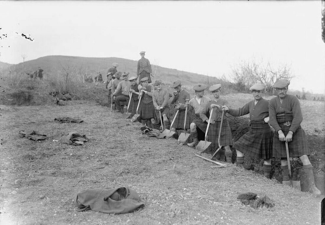 With the outbreak of the Great War, Phillips' career was to be put on hold and he was commissioned 2nd Lieutenant with the Royal Highlanders (Black Watch) on 3 December 1914. Serving in France in 1915 Philips served with the 10th Battalion, Royal Highlanders and embarked for France in September but did not stay long, being transferred to the Salonika Front in November. Promoted Lieutenant on 7 June 1916, Phillips notably commanded a trench raid carried out by men of 'A' Company, 10th Battalion against the P5 feature on Pip Ridge near Lake Doiran on 9 October 1916. He is likely to have seen this feature a good deal more, not least when the Battalion was engaged at the disastrous Battle of Doiran. Phillips again served with 'A' Company and performed well - however he was lucky to survive the battle unharmed, with five officers killed and another six wounded.