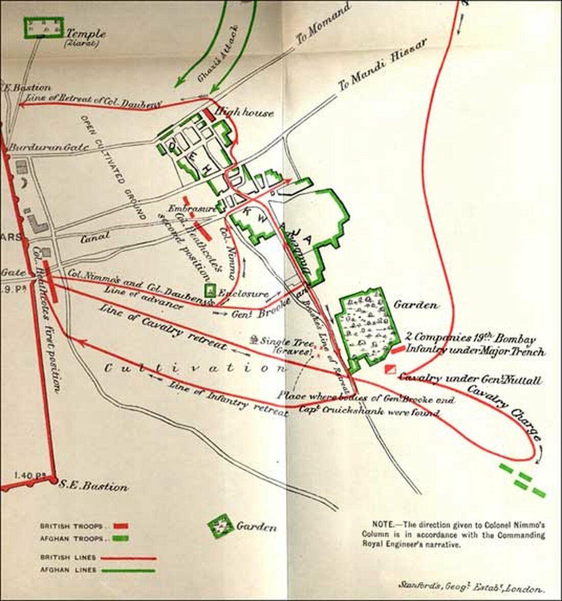 On 11th August, they and 4,500 other British and Native troops were besieged by 10,000 enemy tribesmen. On 16th August, five companies of the 2/7th (367 men), along with Companies from the 19th and 28th Native Infantry, formed part of a force of 900 infantry and 300 cavalry, sent on a sortie to attack the nearby fortified village of Deh Khoja. The plan which had originally been intended to involve a much larger force was foolishly stripped down in size by Brigadier-General Brooke and he would lead the attack. After suffering heavy casualties, the force finally reached the village, which was made up of a warren of streets and houses, perfect for defence. In the fierce hand-to-hand fighting that followed and with enemy reinforcements streaming into the fight, retreat became the only option. Brooke himself was was killed, as were many of his senior officers and as recalled: