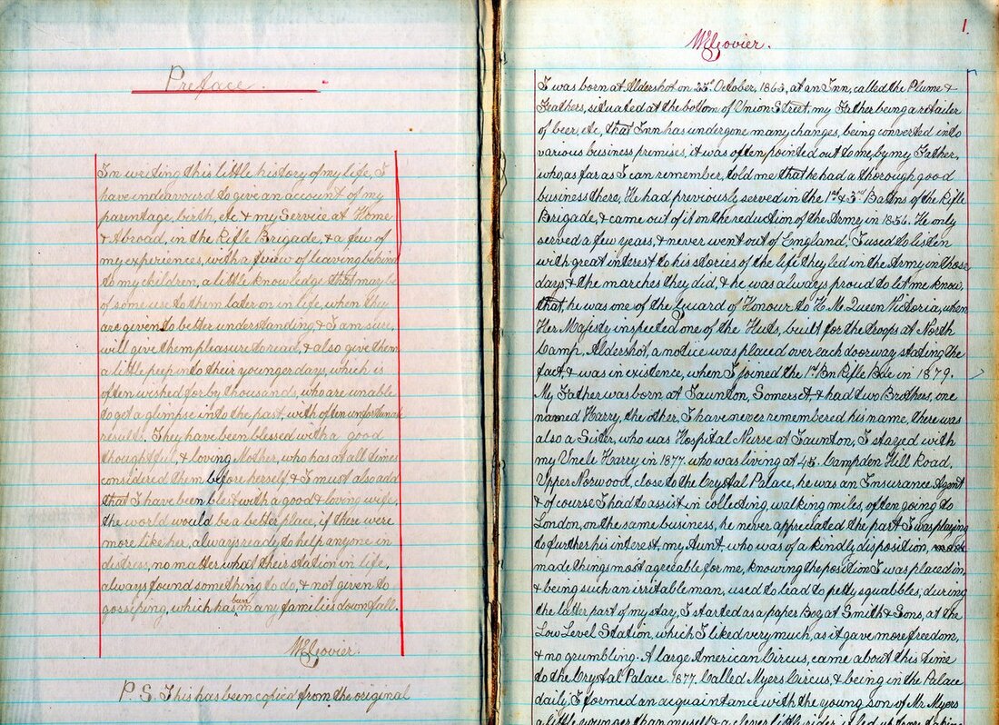 After leaving the colours, Grovier became principal attendant at the War Office library and authored the extensive memoir detailing his life in the Rifle Brigade, Family Recollections: Memoir of a Victorian Soldier. Upon the outbreak of the Great War his medal index card lists him at his former rank of Band Sergeant and as being entitled to the Meritorious Service Medal. Grovier later passed away on the 17 December 1947 in Buckingham. His children and grandchildren published his memoir in 1993, one of the sources being the handwritten memoir included within this lot.
