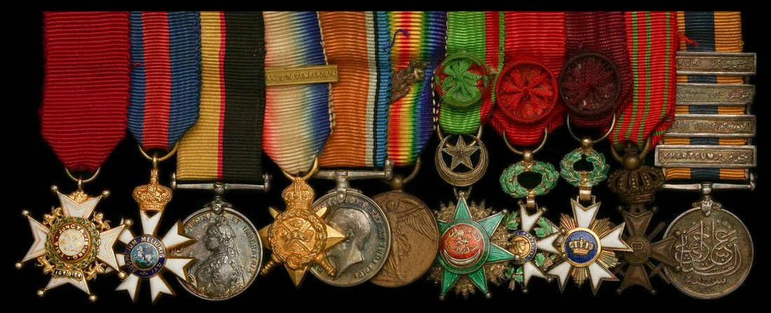 The Most Honourable Order of the Bath, gold and enamel; The Most Distinguished Order of St Michael and St George, gold and enamel; Queen's Sudan 1896-98; 1914 Star, clasp; British War and Victory Medals with M.I.D. oak leaves; Turkey, Ottoman Empire, Order of Osmanieh; France, Republic, Legion of Honour; Belgium, Kingdom, Order of the Crown; Belgium, Kingdom, Croix de Guerre; Khedive's Sudan, 4 clasps, Khartoum, Sudan 1899, Bahr-el-Ghazal 1900-2, Jerok, mounted as worn, very fine (11)
