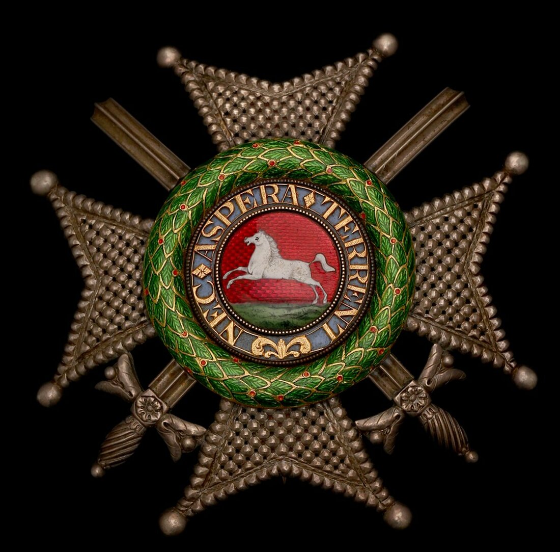 (x) The Royal Guelphic Order, Military Division, Knight Commander's (K.C.H.) breast Star by Rundell Bridge & Rundell, London, 80mm, silver, silver-gilt, gold and enamel, gold retaining pin to reverse, very fine