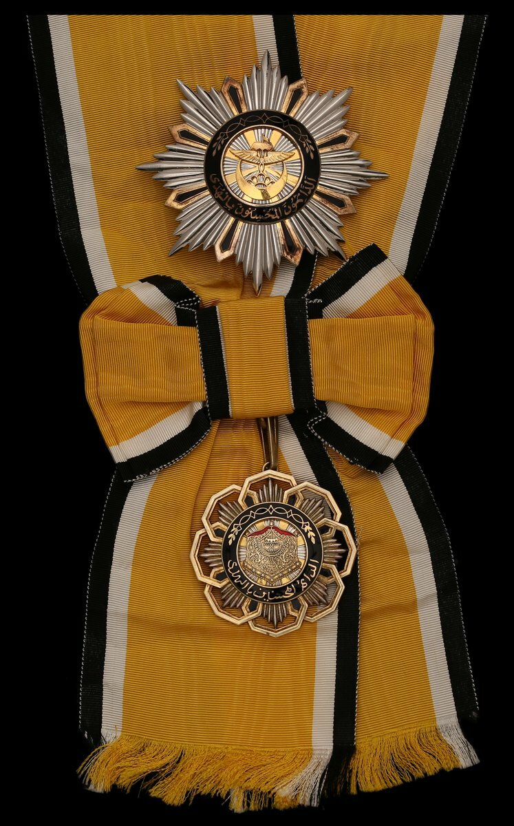 (x) Brunei, Sultanate, The Most Honourable Order of the Crown of Brunei (Darjah Seri Paduka Mahkota Brunei Yang Amat Mulia), 1st Class set of Insignia by Spink & Son, London, comprising sash Badge, 84mm including suspension x 63mm, silver, silver-gilt and enamel, very minor scratch to rim; breast Star, 97mm, silver, silver-gilt and enamel, silver mark to reverse, gold retaining pin to reverse, minor scratch to ray, very fine (2), with full sash riband