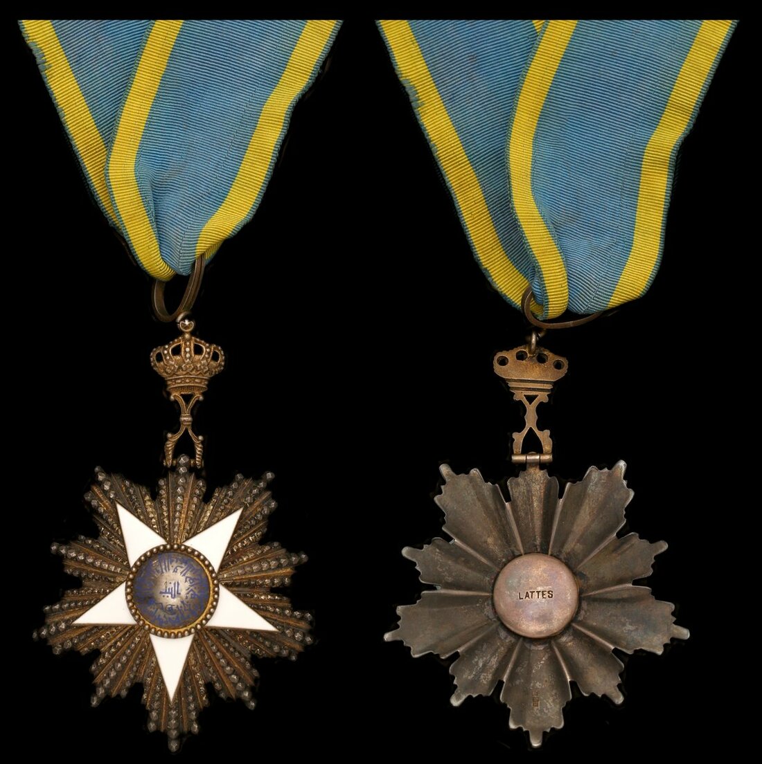 (x) Egypt, Kingdom, Order of the Nile, neck Badge, by Lattes, Cairo, 93mm including crown suspension x 63mm, silver, silver-gilt and enamel, hallmarks for Cairo 1922-23 to reverse, good very fine, with neck riband