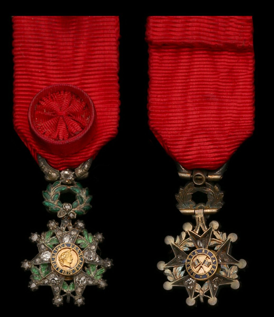 (x) France, Republic, Legion of Honour, 25mm including wreath and diamond suspension x 18mm, gold, silver-gilt and enamel, enhanced by circa 25 chip diamonds of varying size and cut, very fine