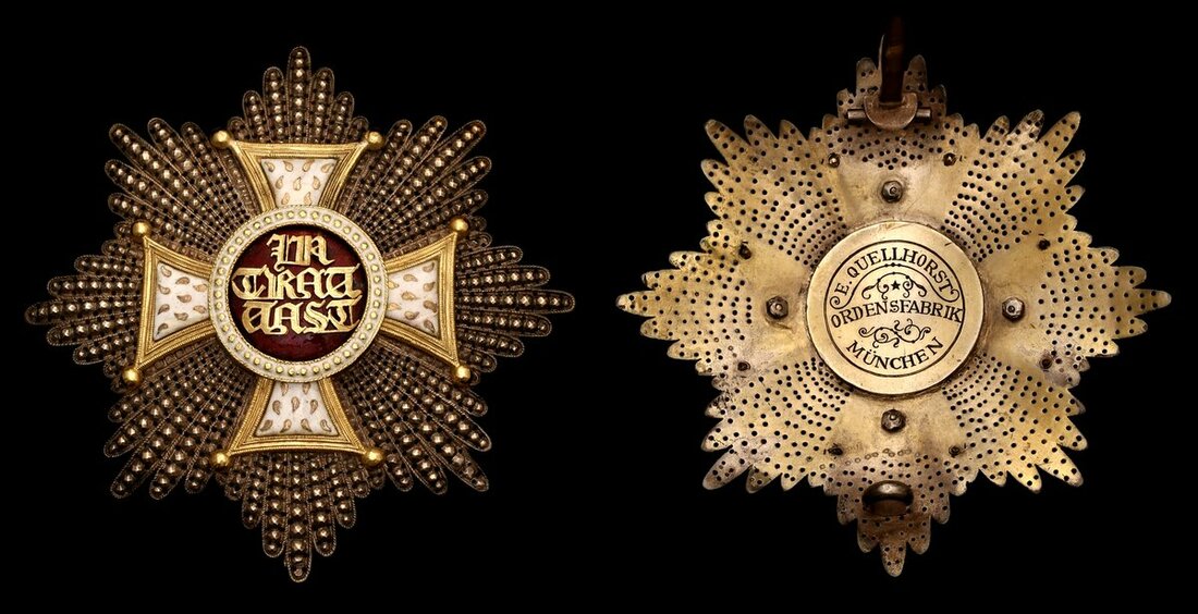 (x) Germany, Bavaria, House Order of St Hubert, an early Grand Cross Star, by E. [Eduard] Quellhorst, Ordernsfabrik, Munchen, 80mm, silver-gilt, silver and enamel, reverse gilt, with ornately engraved maker's cartouche to reverse, some enamel chipping, very fine, in its fitted case