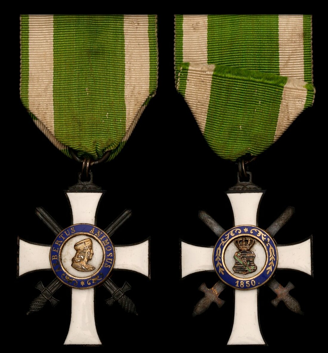 (x) Germany, Saxony, Albert Order, Military Division, Knight's breast Badge, 43mm x 35mm, silver-gilt and enamel, about very fine
