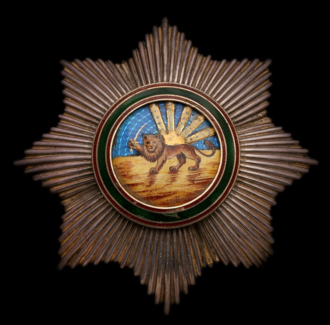 (x) Persia, Empire, Order of the Lion and the Sun, Grand Cross breast Star, 96mm, silver, silver-gilt, gold and enamel, retaining pin marked '900', good very fine