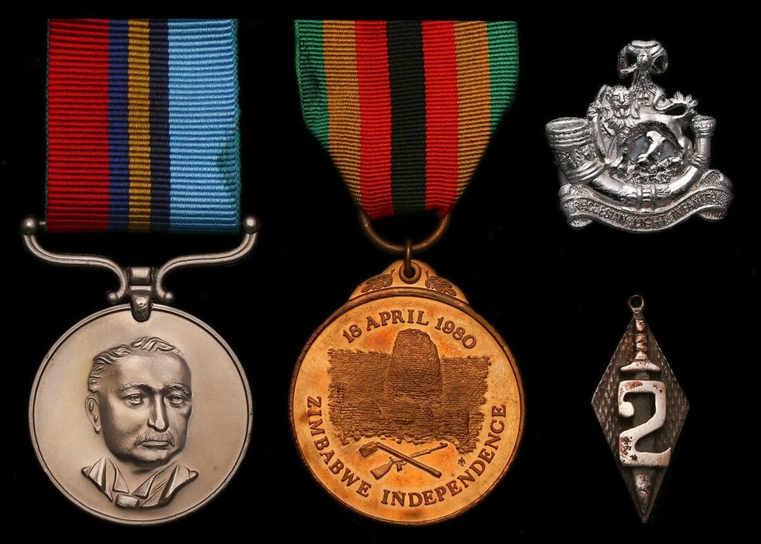 Minor photographs, Rhodesian Light Infantry Badge and a 2 Commando pendant.