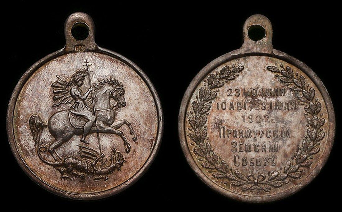 (x) Russia, Imperial, Primorsky Zemsky Sobor 1922 Medal, silver, initials 'P.Sh.' for P. Shulgin by loop, obverse depicting St George slaying the dragon, the reverse with the inscription for the dates 23 July-10 August 1922, without loop, nearly extremely fine