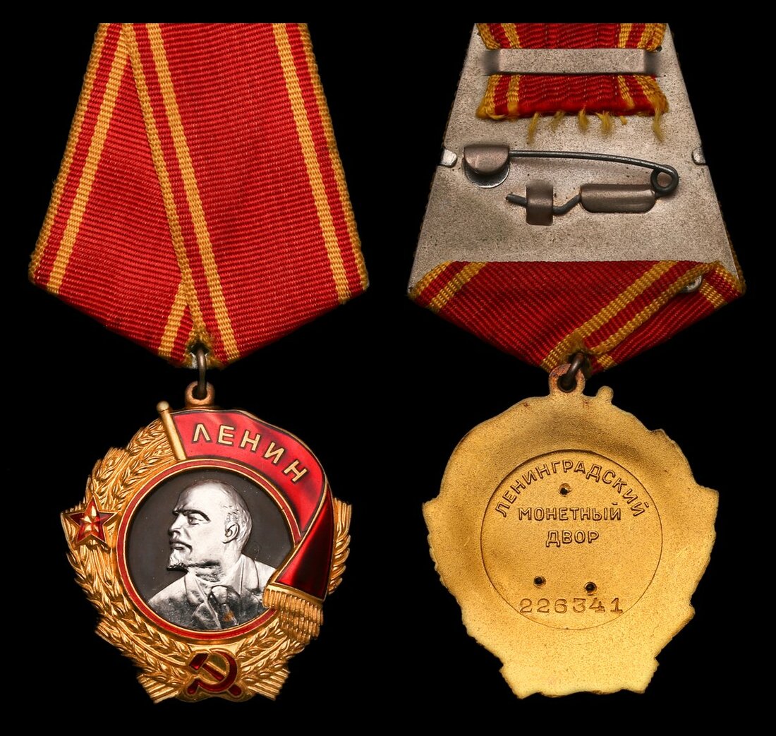 (x) Russia, Soviet Union, Order of Lenin, gold, platinum and enamel, the reverse officially numbered '226341', red enamel chip to star, very fine