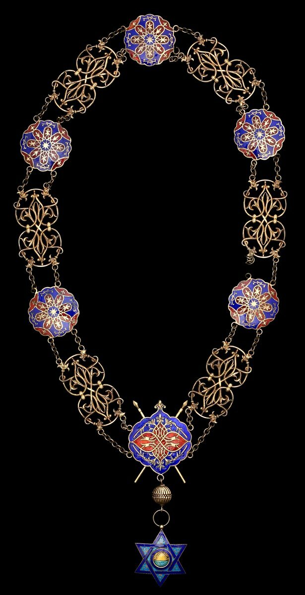 In August 1926, Prince Moulay Hassan bin al-Mahdi established this as a six-Class Order to reward those who assisted in furthering the interests of the Protectorate. The Collar was awarded very sparingly, only to Heads of State and Princes.