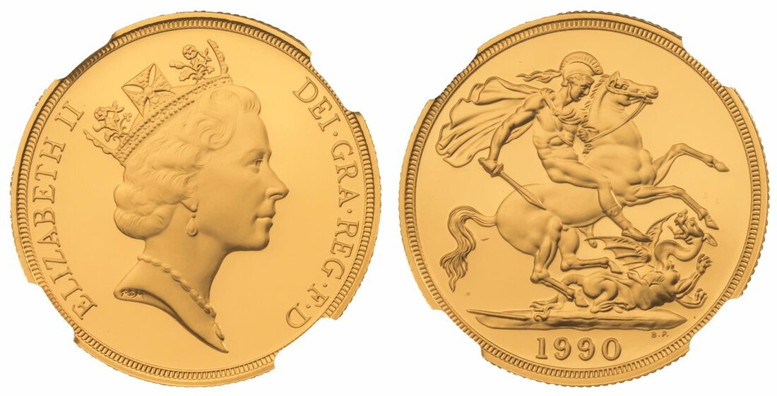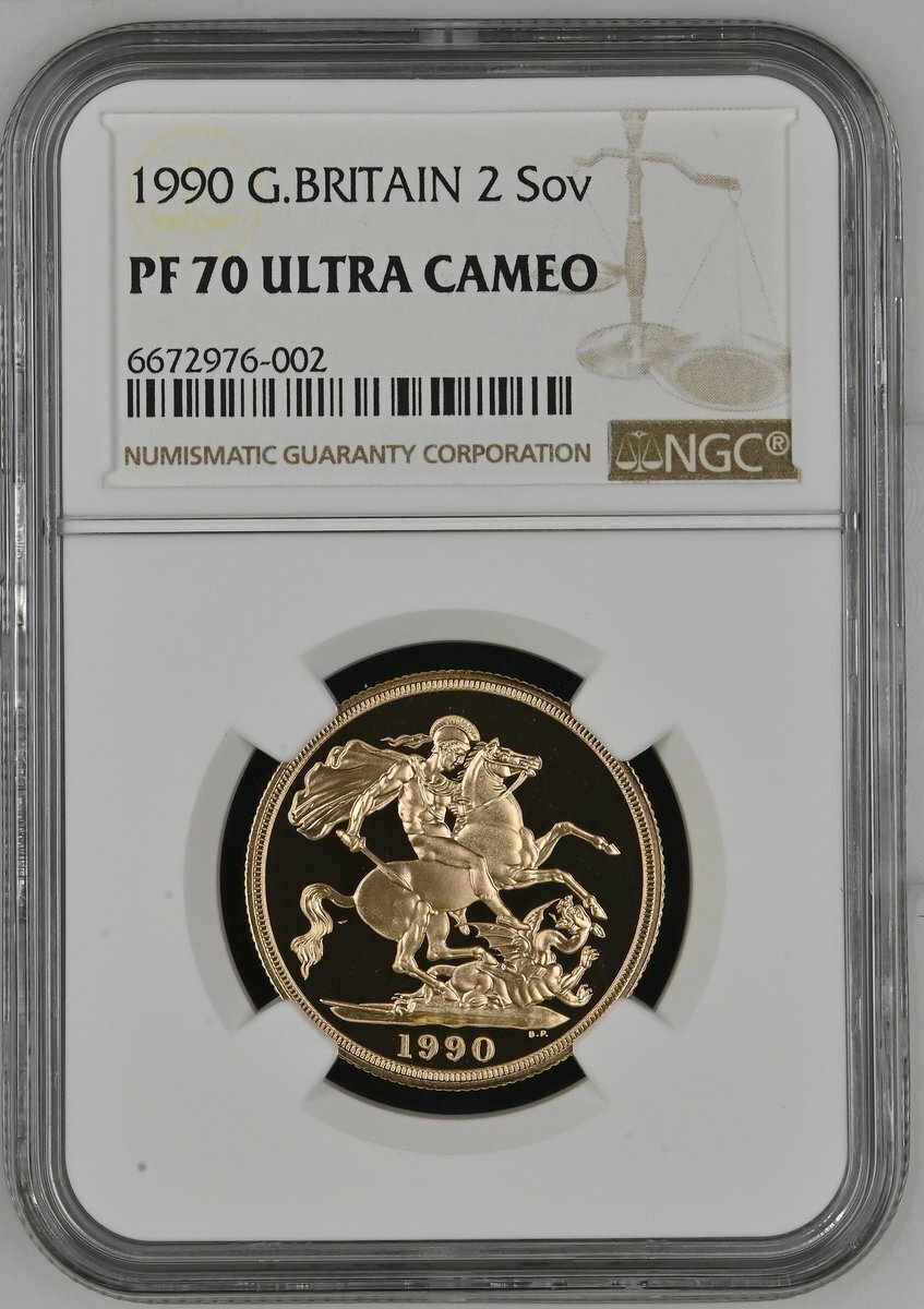 (g) NGC PF70 UCAM | *Top Pop* | Elizabeth II (1952-2022), Proof Two-Pounds, 1990, third crowned bust right, by Raphael Maklouf, rev. St George and Dragon, edge milled, 15.97g*, 12h (S.SD2), handsome cameo definition, brilliant as struck, in NGC holder, graded PF70 UCAM (Cert. #6672976-002) [*Joint Finest Certified*]