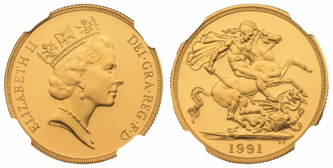 (g) NGC PF70 UCAM | *Top Pop* | Elizabeth II (1952-2022), Proof Two-Pounds, 1991, third crowned bust right, by Raphael Maklouf, rev. St George and Dragon, edge milled, 15.97g*, 12h (S.SD2), handsome cameo definition, brilliant as struck, in NGC holder, graded PF70 UCAM (Cert. #6947665-010) [*Joint Finest Certified*]