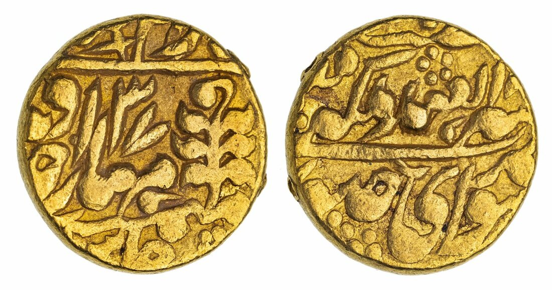 (g) India, Princely States, Jaipur, Ram Singh (1835-1880), gold Mohur, Sawai Jaipur, ry.37 (1872), in the name of Ram Singh and Queen Victoria, 10.86g (KM 125), punch marked to edge, overwise bold very fine