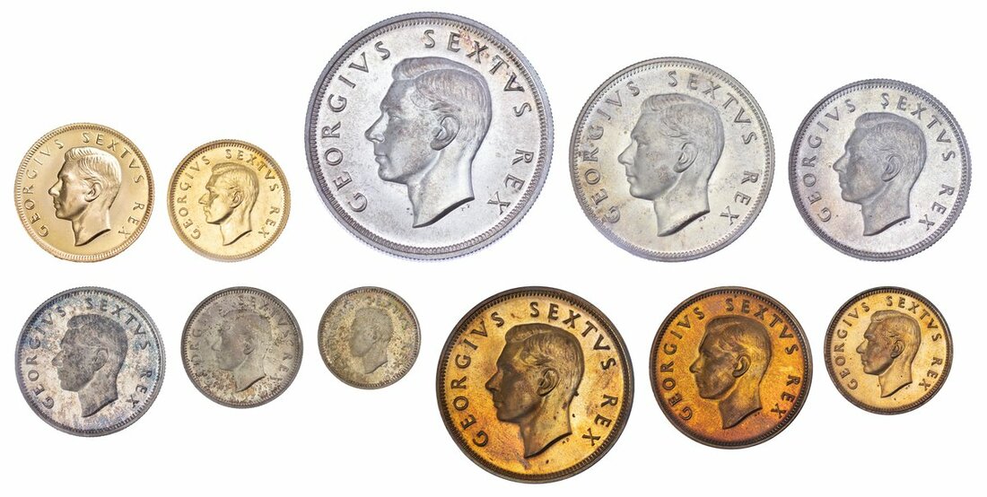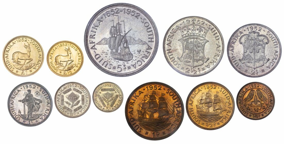 (g) South Africa, George VI (1936-1952), Proof Set, 1952, Gold Pond and Gold Half-Pond, Crown to Farthing (11) (KM PS24), minor cabinet friction to the gold, otherwise the silver lightly toned and with full cartwheel lustres, Penny to Farthing with handsome red surfaces and full cartwheel lustres, much as struck, in case of issue (11)
