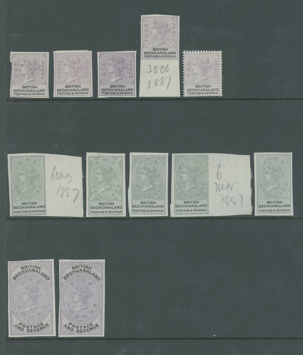 1888 on Unappropriated Values 1d. to £5 set of twelve imperforate imprimaturs (2d. is from the perforated registration sheet), each bears registration date written in pencil either on the reverse or in the margin (4d., 1/- and 2/6d.), with gum; £1 with corner crease. A rare and highly important set, one of only three cut from the imprimatur sheets