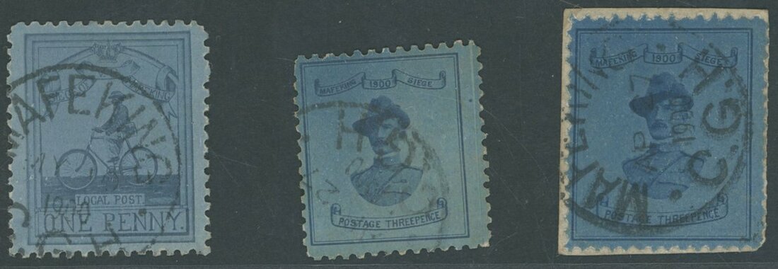 (6-10 Apr.) 1d. Goodyear pale blue on blue, 3d. Baden Powell (small format) and 3d. Baden Powell (large format), all used with