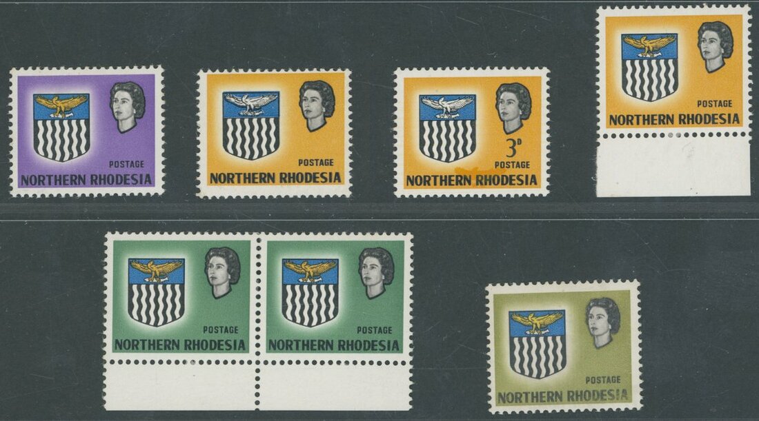 A small mint group of varieties (7) comprising ½d. bright violet, with value omitted, 3d. yellow- three varieties (3) comprising value omitted, value and orange (eagle) omitted and orange (eagle) printed at foot, 4d. green horizontal pair from the foot of the sheet and 6d. light olive-green, both variety value omitted, good to fine lightly mounted mint. S.G. 75a, 78a, 78b, 78 var., 79a, 80a, £2,900+