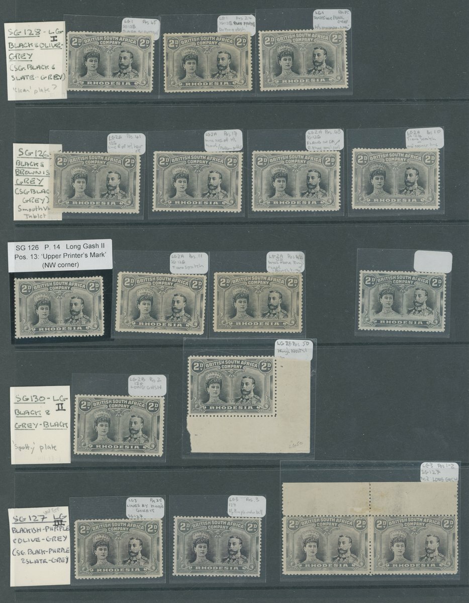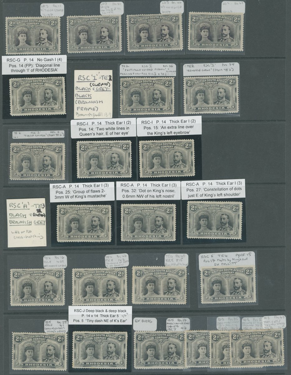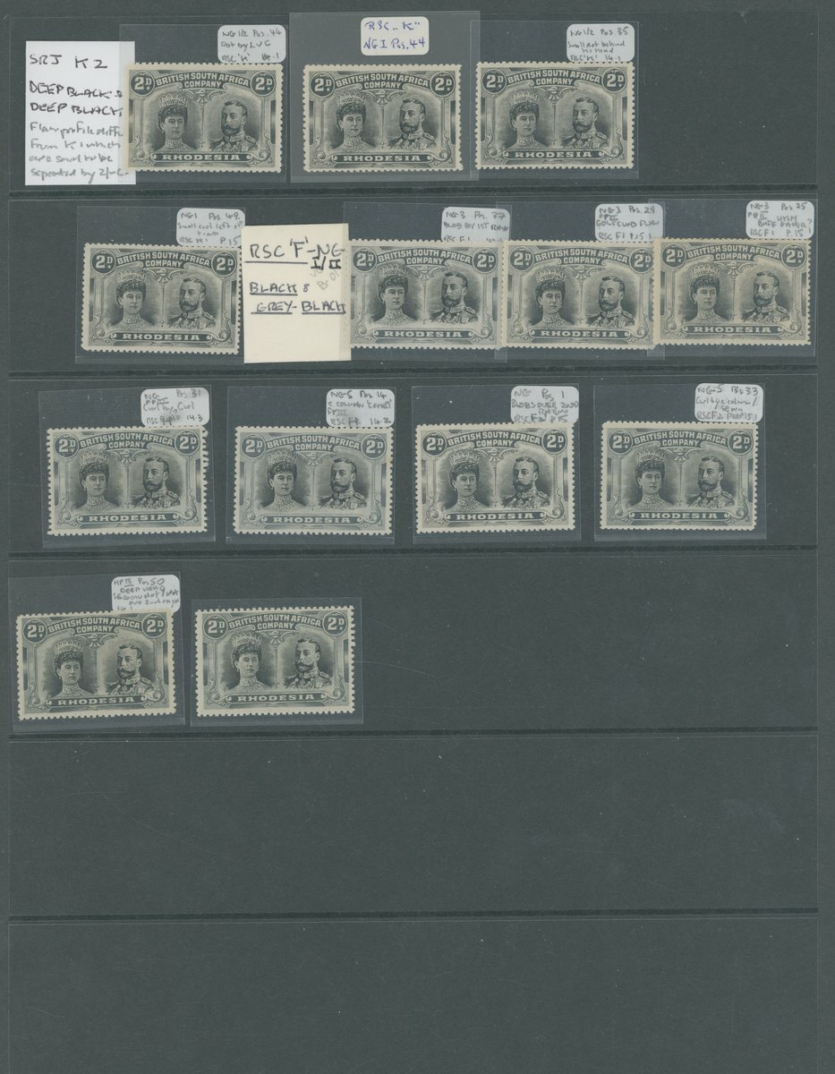A group of mint single examples and a pair on Hagner pages, almost all perf. 14 (53) including black and grey, black purple and slate grey including horizontal pair [1-2- showing long gash in Queen's ear, black and slate-grey, black and olive grey etc., also a range of RSC shades including A, B, E, F, G, I, J, K, etc. some with notable headplate flaws, a good to fine specialised group