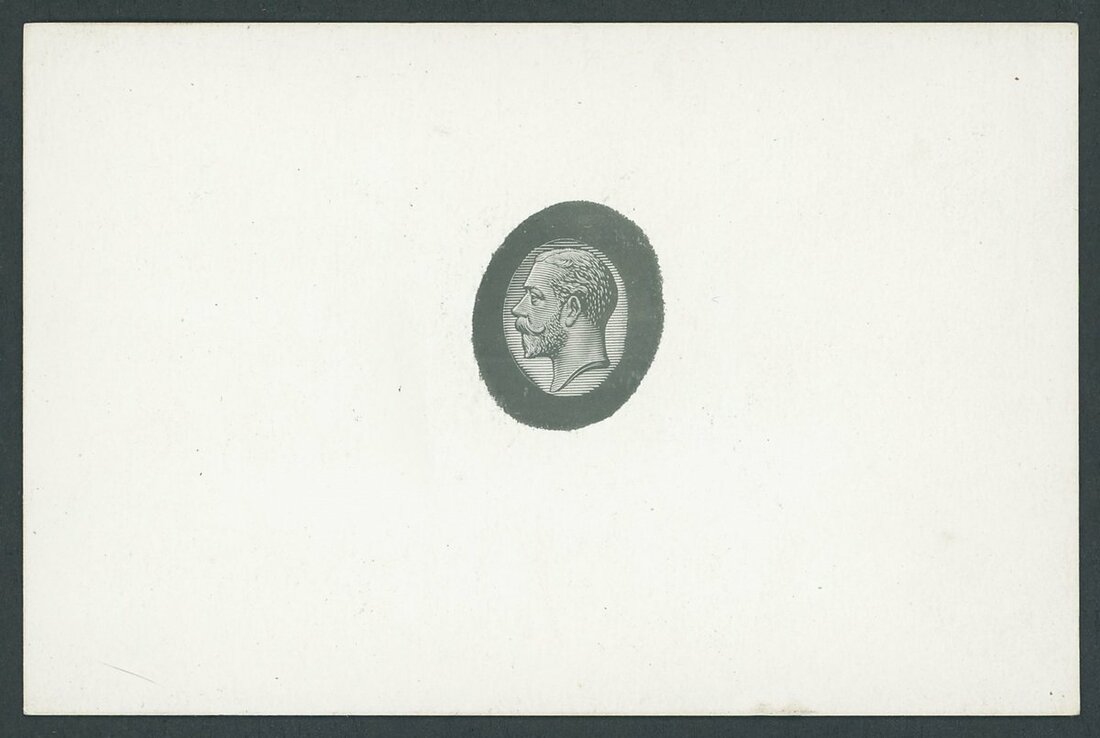 Die proof of the Mackennal head with uncleared surround, in black on white glazed card (82 x 60mm.), no other markings; fine