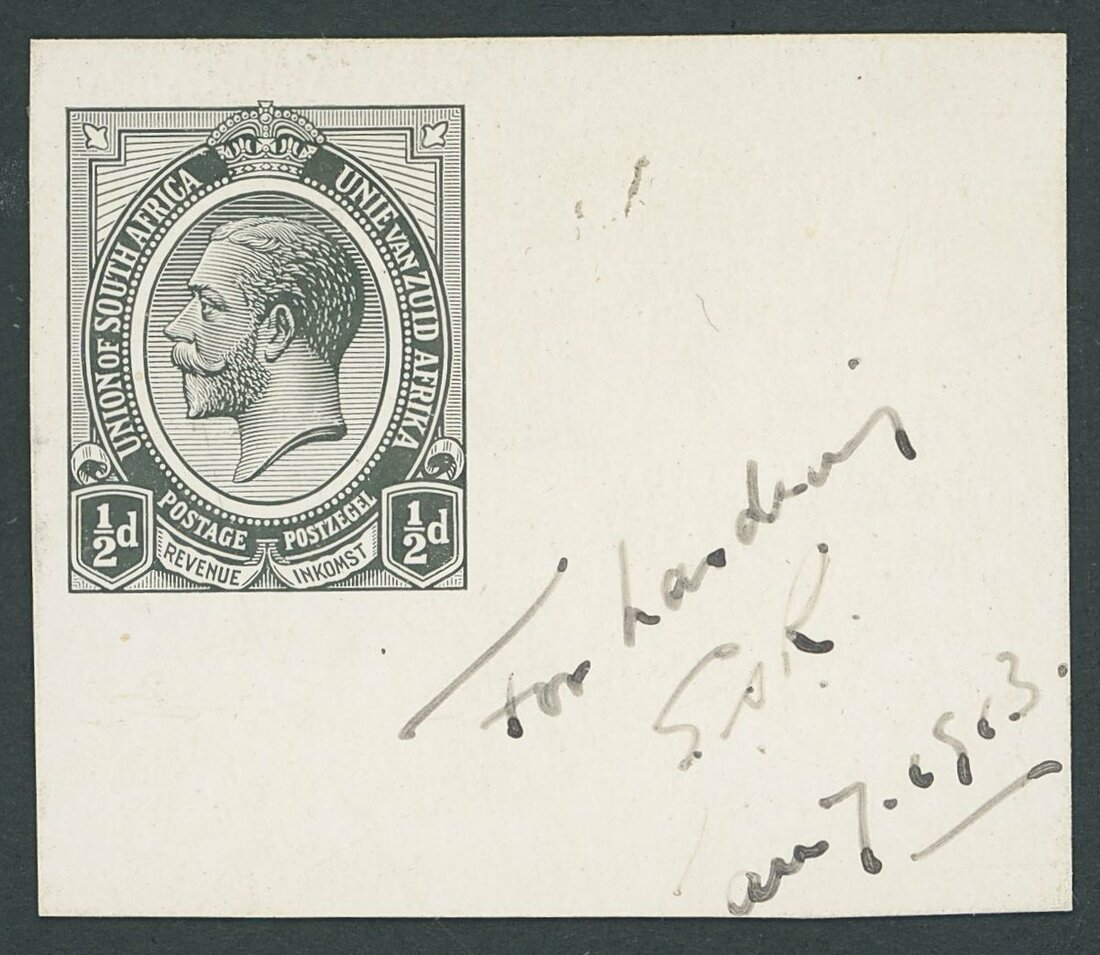Die proof of the completed design in black on white glazed card (49 x 41mm.) endorsed 'For Hardening/ G.A.R.' and dated 'Jan 7 1913' in black ink; fine
